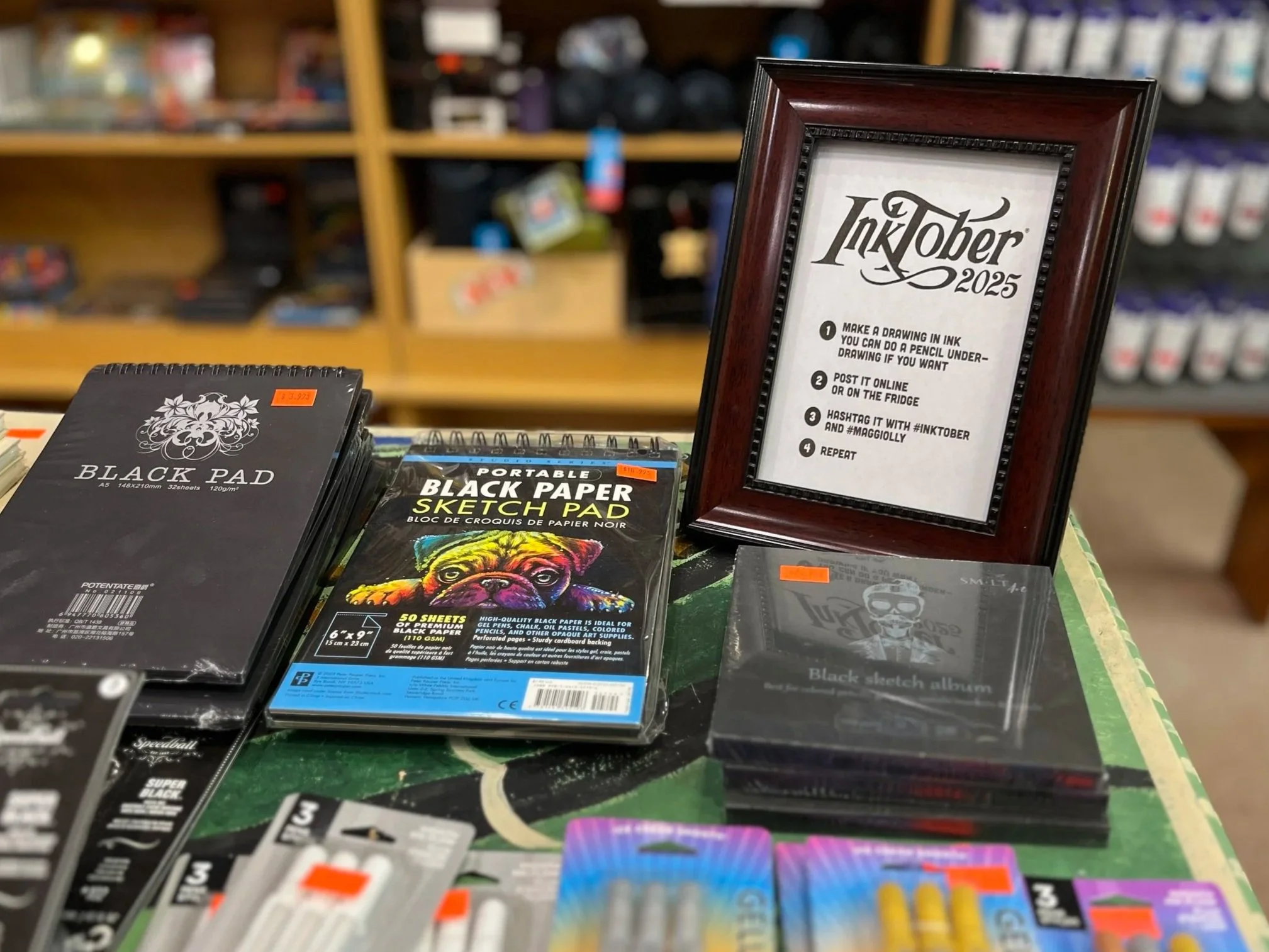 Interested? Make sure you’ve got your inks, markers, sketch and archival papers ready to go. Stop by the shop to stock up, say Hi! and maybe get inspired as well!