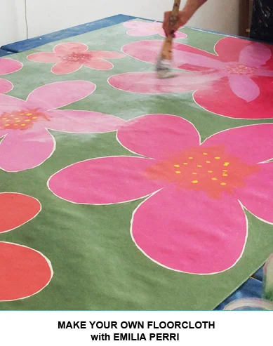 In this 3-day workshop, you will form the floorcloth, glue the edges for a strong seam, create an acyrlic painting (subject matter your choice), and then watch it add life to any room in your house!