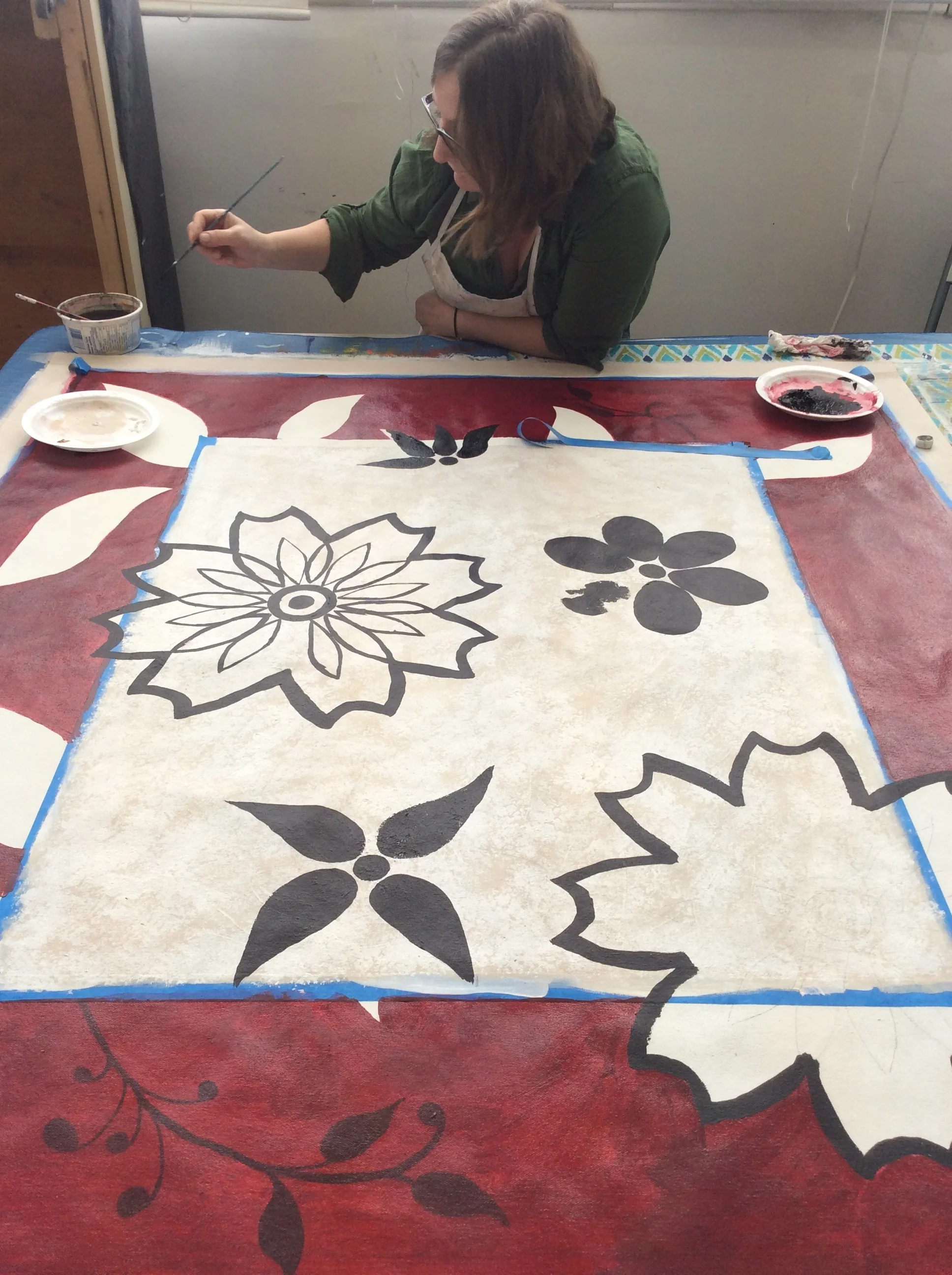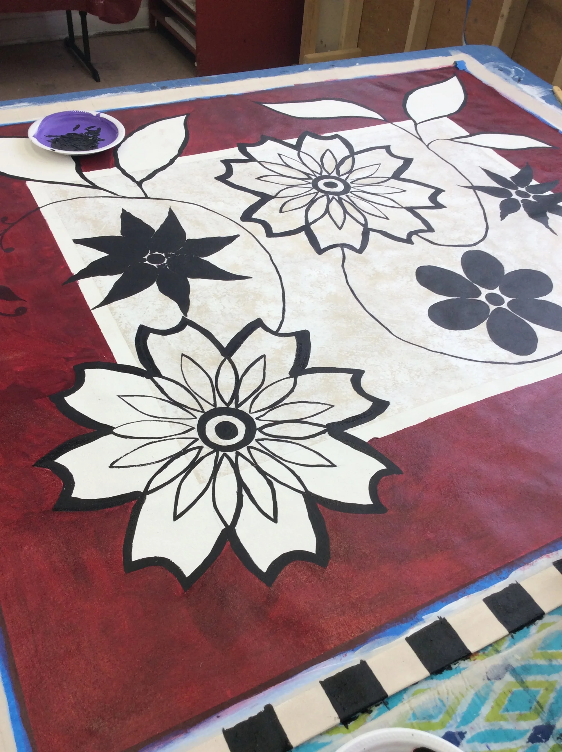 Cost of the floorcloth ($25/yard) is not included in ticket price; you can choose the size to work on and purchase it during the workshop.